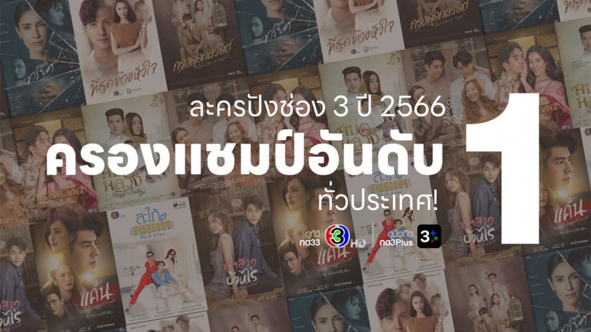 ช่อง 3 ครองแชมป์อันดับ 1 ทั่วประเทศ! ละครสุดปัง ปี 2566 ที่โดนใจผู้ชม