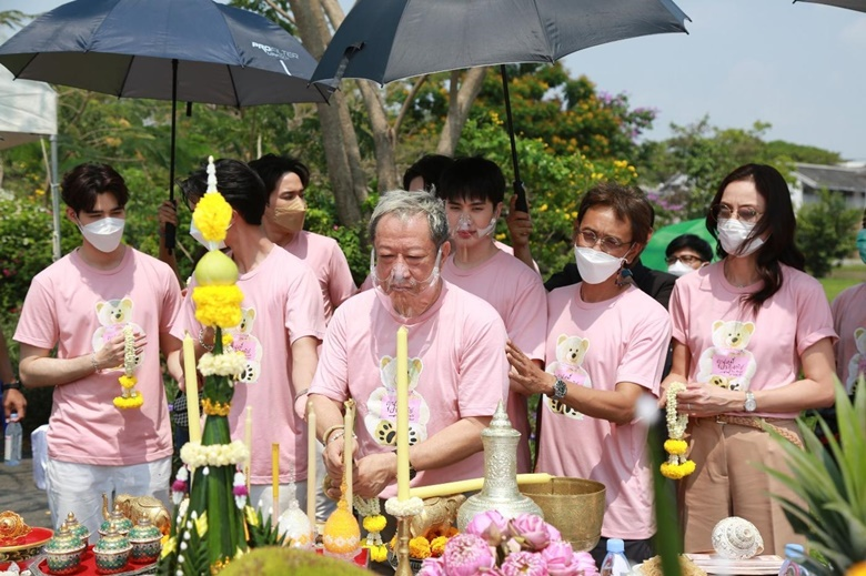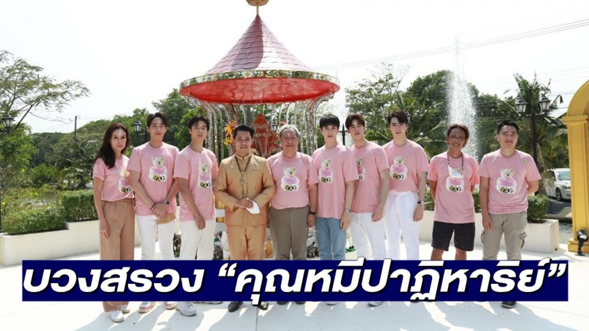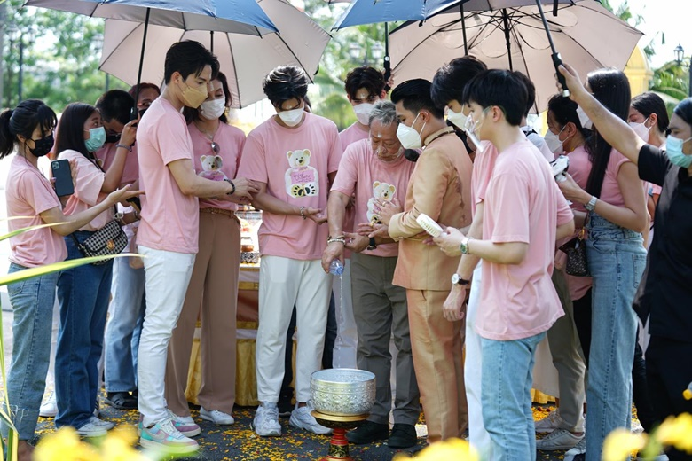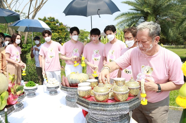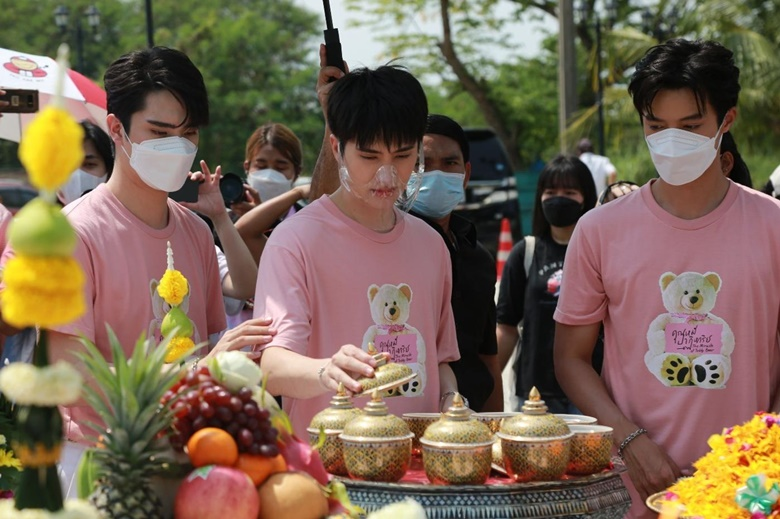 ซึ่งก่อนละครจะออนแอร์ผู้จัดผู้กำกับ “ป้าแจ๋ว ยุทธนา” แห่งค่ายถนัดละคร ได้นำทีมผู้กำกับ “พุ เหมันต์” นักประพันธ์ ปราปต์ และเหล่านักแสดงนำ อาทิ อิน สาริน, จ๊อบ ธัชพล, ตี๋ ธนพล, เฟริสท์ ภาราดา, ยูโด ธรรม์ธัช, อุ๋ม อาภาศิริ และ โจม ศุกล ร่วมกันมูเตลูเอาฤกษ์เอาชัยจัดพิธีบวงสรวงละคร “คุณหมีปาฏิหาริย์” (The Miracle of Teddy Bear) เมื่อวันที่ 11 มีนาคม 2565 เวลา 13.20 น. ที่ผ่านมา ณ สถานีโทรทัศน์ไทยทีวีสีช่อง 3 (หนองแขม) ในวันงานถึงแม้อากาศจะร้อนแต่บรรยากาศกลับเต็มไปด้วยความเป็นสิริมงคล และความรักจากเหล่าแฟนคลับของ 4 หนุ่ม “จ๊อบ ธัชพล - อิน สาริน - ตี๋ ธนพล - เฟริสท์ ภาราดา” ที่ได้จัดเต็มทั้งช่อดอกไม้และฟู้ดทรัค (รถอาหาร ขนม เครื่องดื่ม) มาซัพพอร์ตให้ทุกคนภายในงานได้อิ่มท้อง ชื่นใจกันทั่วหน้า